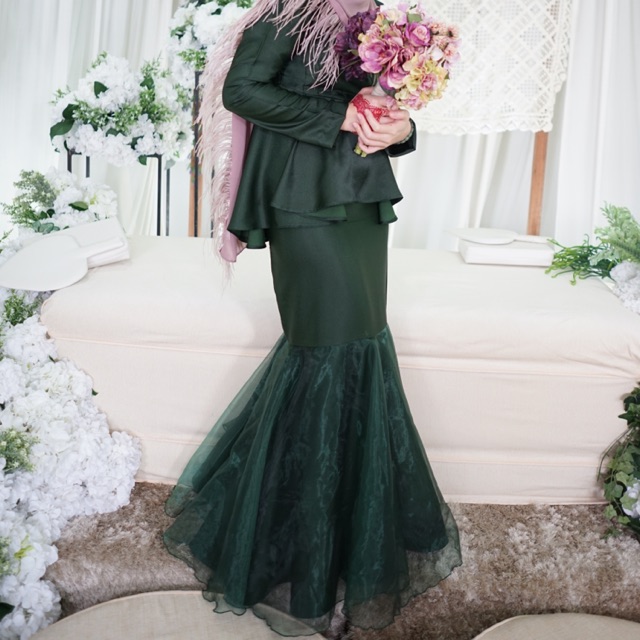 Princess lea kurung moden puff slevee organza skirt mermaid baju raya baju tunang nikah kahwin .